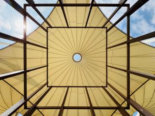 The courtyard panels—dyed with henna, indigo, pomegranate, marigold—reference the four elements needed for life: soil, water, trees, and sun. The structure functions like an oversized loom, where form, ornament, and spirituality intertwine. After the Biennale, the Musalla is designed to fragment and reappear—traveling through historic squares in Jeddah, and later, to Venice. It is a prayer space with multiple futures, responsive to its surroundings, and embedded with acts of renewal.